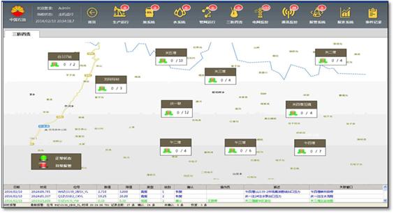 油系統重點包含站內監控系統、井場監控系統,以油系統總集輸界面為引導,根據不同的權限訪問到各站的數據。 工藝界面相關參數可點擊顯示其前24小時趨勢曲線,針對站內外輸泵可直接進行手動控制、連接續輸油、自動控制等操作。 油系統井場監控,重點以各站井場回壓、油井沖程、沖次、最大載荷、最小載 荷、油井狀態、啟停井、功圖分析。 油井監控界面可直接對某口油井進行遠程啟停,也可打開井場視頻進行油井狀態的觀察,根據實際控制要求進行控制。