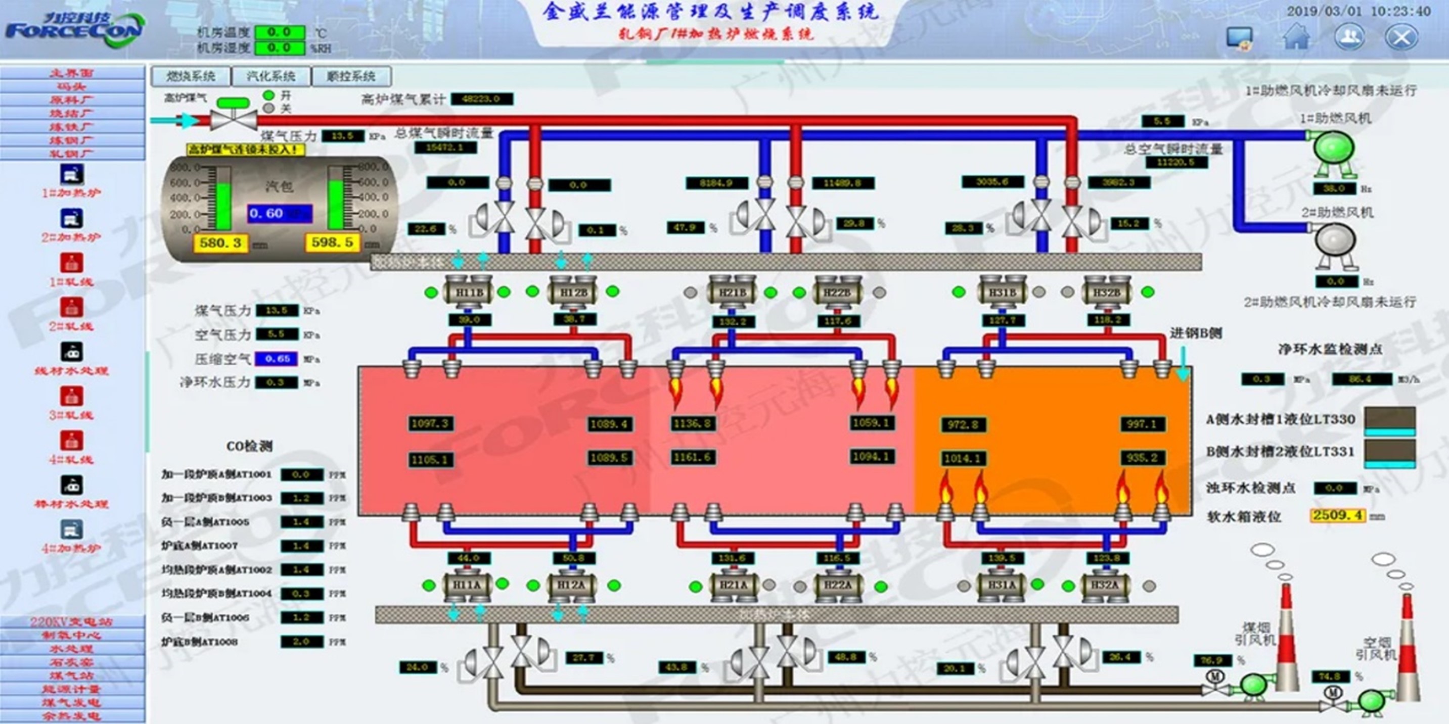 針對客戶需求,力控科技為該項目建立了一套全局性的生產調度、能源管理系統,構成覆蓋基礎自動化、過程監控及管理三個功能層次的能源管理調度系統,并建立了工業通訊網絡,為能源管理及生產調度中心提供各能耗單位、監控設備的數據,完成實時數據的匯總、分類、存儲、以及統計分析。