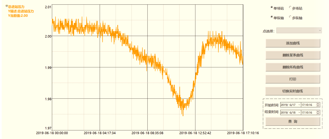 系統可任意組合用戶測量趨勢、測量參數累計、故障時段等趨勢記錄,并可通過打印輸出。管理人員可通過實時或歷史趨勢了解管網過去及當前的狀況、分析未來的趨勢。