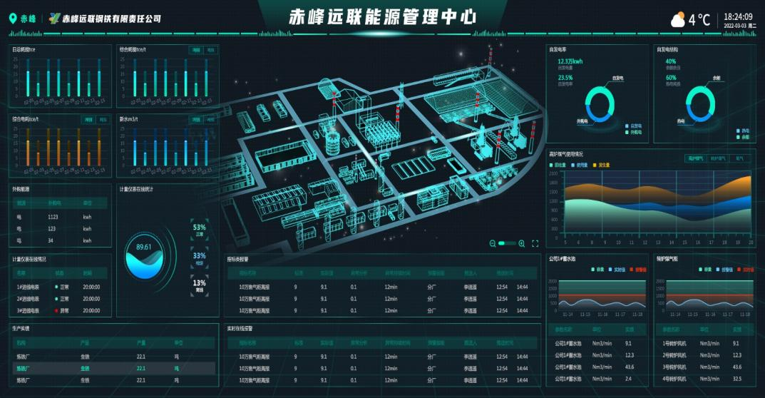 對全廠的有組織及無組織排放系統的實時監測,和環保車輛、視頻監控系統的數據互通以及建設危險源監管系統,將安全環保數據全面納入管控系統,打造數據綜合可視化展示平臺