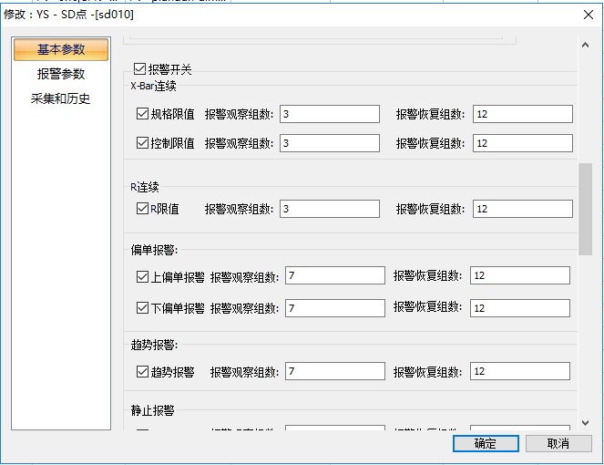力控SCADA平臺SPC的預警與報警集成了多項功能,包含X-bar與R-bar的限值、偏單、趨勢、靜止等,以及對應觀察與恢復組數的報警觸發機制,可在問題顯現時通過聲光警報及時提醒,自動發送郵件通知相關人員。一旦發現失控,可迅速查明原因并糾正,達到質量與工藝持續改進的目的。
