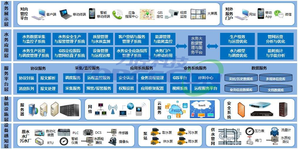 力控水務集團智慧水務系統(tǒng)具備自動信息采集、及時信息傳遞、高度集中管控、數(shù)據(jù)挖掘分析的能力,在整個企業(yè)信息化系統(tǒng)中對各設備子系統(tǒng)進行統(tǒng)一的監(jiān)測、控制和管理,打破數(shù)據(jù)信息孤島,加強集團對所屬自來水廠、污水廠、泵站、管網(wǎng)的管控力度,極大的提升企業(yè)的管理水平,保證供水工作的科學性,提供數(shù)據(jù)分析,及時發(fā)現(xiàn)運行故障。從而提高維護效率,降低損失、保障輸水、供水質量,達到科學預警,減少成本,提高效率的目的。為水務企業(yè)生產(chǎn)、經(jīng)營、服務、管理提供服務決策支撐。