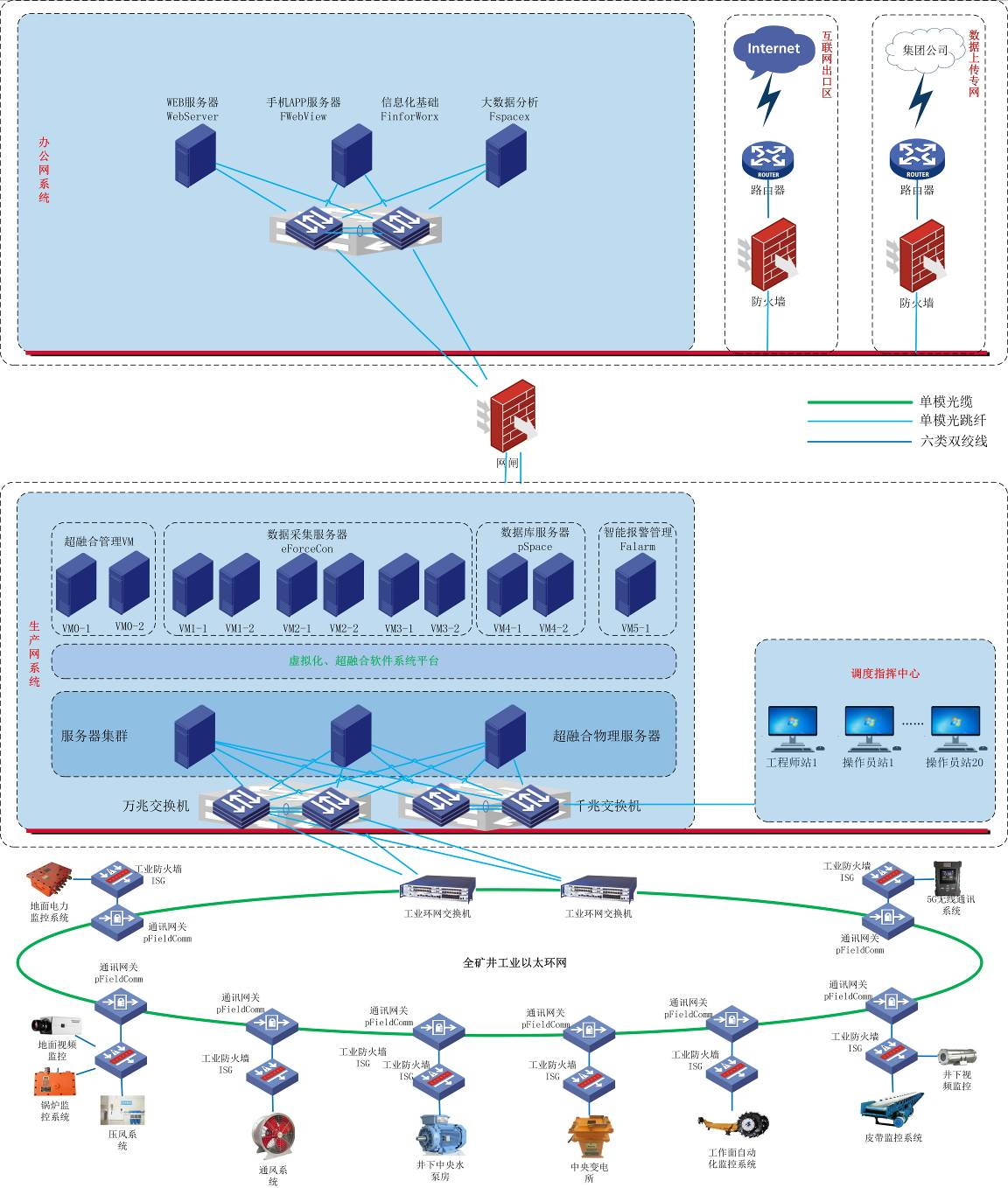 平臺系統集成了井上下所有的安全、生產、通信、動態目標類系統,數據實現了融合,同時向數據中心發送所有數據
