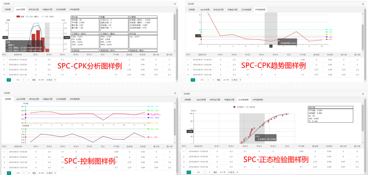 * SPC分析功能:可自動采集質量檢測數據,或人工導入質量數據做SPC質量分析,新增SPC質量分析模塊,讓產品的生產過程數據記錄在檔,強大的分析功能讓質檢人員只需選擇導入已過濾的樣本數據,即可分析出產品的優(yōu)劣,大幅縮短質量分析的時間,時間縮短 87% 以上。 * CPK分析功能:對質量檢測項目和數據進行CPK計算和分析,自動算出在記錄設備的CPK匯總值,時間縮短50%以上。 * 膜厚、折射率抽檢數據采集及分析:統(tǒng)計分析抽檢膜厚、折射率的電池片數量、質量檢測數據,減少人工50% 。