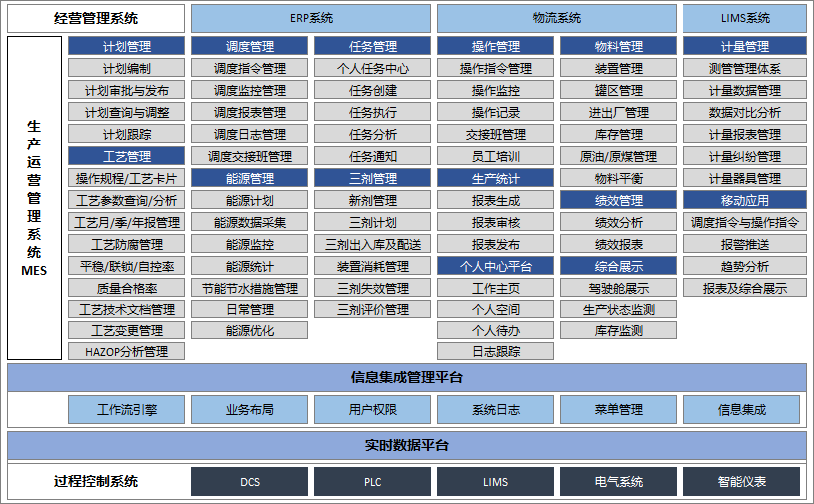 力控科技的MES解決方案先進有效,它將過程知識和信息技術有機融合,形成一套完整的標準化解決方案,功能涵蓋了工廠生產管理業務的各個方面,滿足流程行業MES系統的要求。