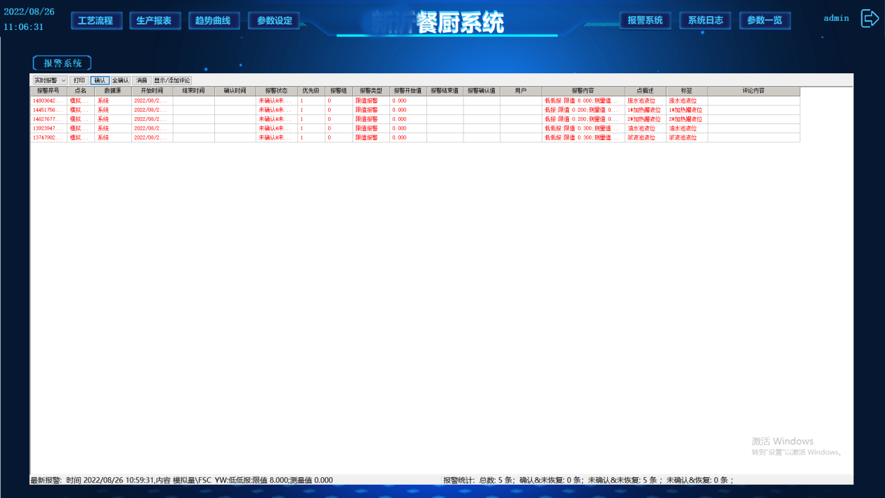 系統自動記錄各種工藝運行數據,將所有數據歸納匯總形成報表,報表可定時打印或召喚打印,操作員也可通過菜單或按鈕進入報表畫面查看歷史報表。
